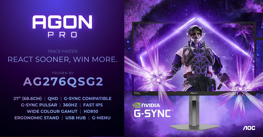 “The AGON PRO AG276QSG2 was built for players who demand the highest level of performance. These hardcore gamers and esports competitors require absolute clarity at speed. By pairing our 360 Hz Fast IPS performance with NVIDIA G-SYNC Pulsar, we’re delivering a monitor that helps top players track faster, react cleaner, and stay locked in when it matters most,” says Kevin Wu, Head of Monitor Business Unit, TPV, AGON by AOC.